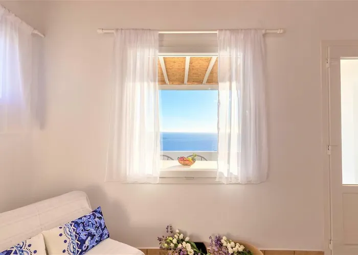 Gelegen op 2 km afstand van het Lena's Huis, 6-slaapkamer Sugar Blue Appartement Mykonos Town beschikt over een ingerichte keuken en een woonkamer met uitzicht op de zonsondergang. Gasten kunnen fietsen en auto's huren om de omgeving te verkennen.